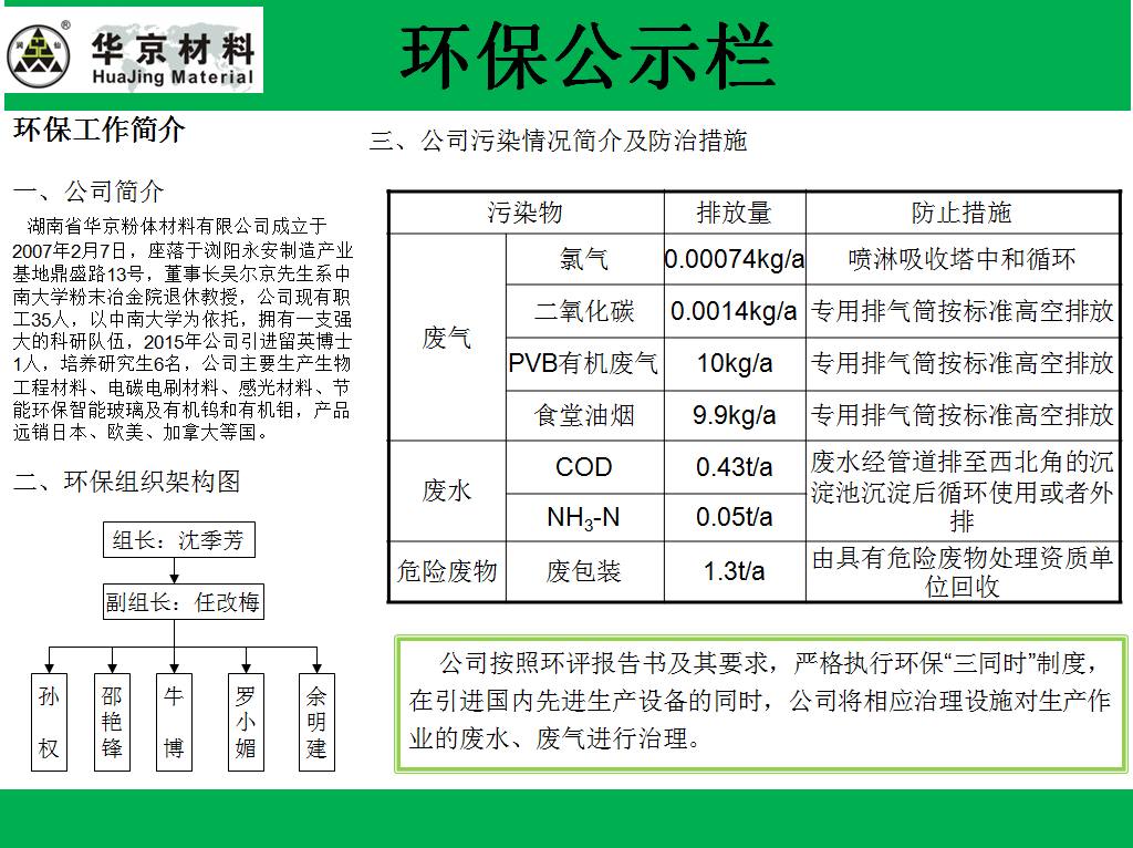 湖南華京粉體材料——環(huán)保公示欄